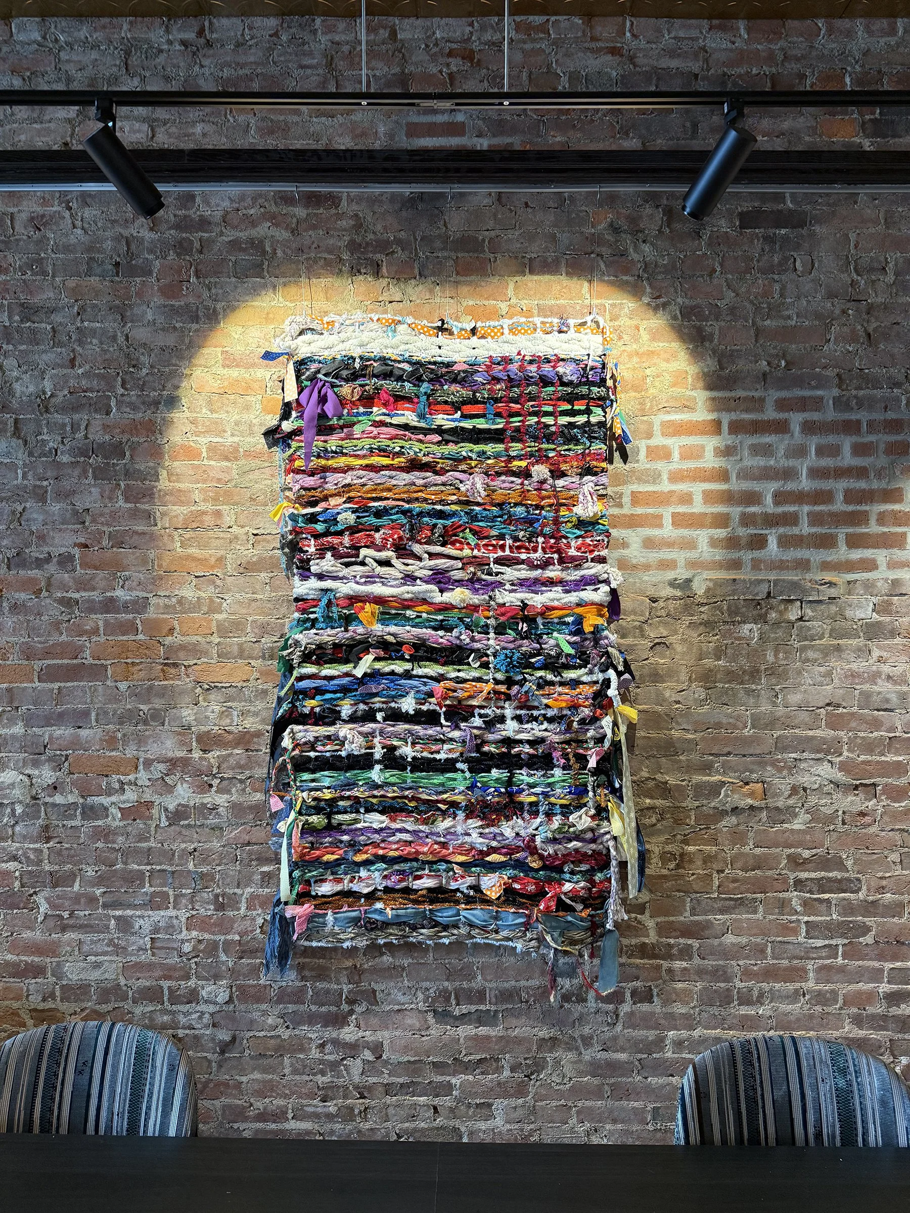 Weaving in Community began with a small project for World Alzheimer's Day in a local coffee shop. What started as a single installation grew into collaborations with hospitals, breast cancer awareness events, and community organizations.